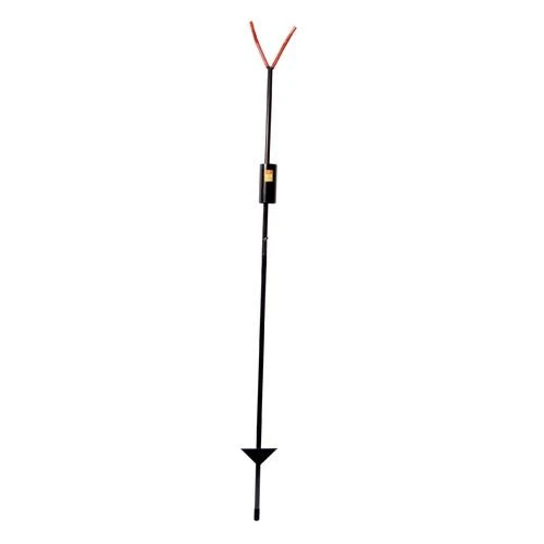 Metalen strandsteun met een lengte van 120cm. Voorzien van geplastificeerde beschermende brede V-hengelsteun.