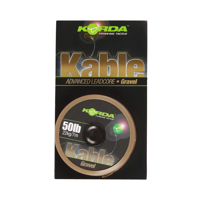 Kable is Korda’s eerste leadcore. In plaats van simpelweg een ‘me-too’-product te produceren, besloot het productontwikkelingsteam om een ​​uniek, gestreept camouflagepatroon te proberen in twee kleuren, Weed/Silt en Gravel Brown. De zorgvuldig geselecteerde, afwisselende banden van subtiele kleur hebben het effect dat de omtrek van uw leider wordt verbroken, waardoor deze praktisch in de bodem van het meer smelt. Kable heeft een breekkracht van 50 lb en is verkrijgbaar op spoelen van 7 m en 25 m. Het kan buitengewoon goed worden gesplitst en produceert sterke lussen voor eenvoudige aansluiting op de rest van uw einduitrusting en hoofdlijn. Als je op zoek bent naar de perfecte leadcore, dan heb je die zojuist gevonden.