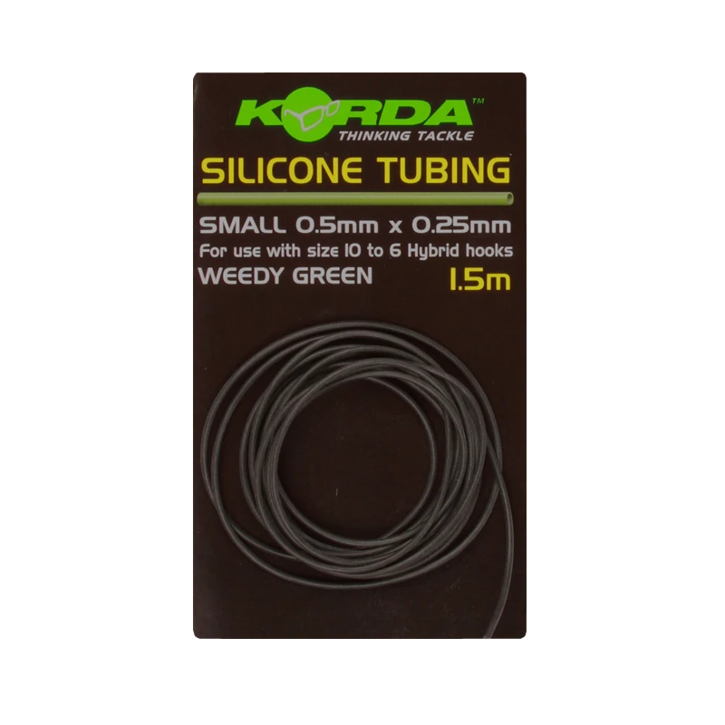 De Silicone Tubing van Korda is ideaal om een hair op zijn plaats te houden, dit voorkomt het in de war gooien van de onderlijn en zorgt tevens voor een veel betere inhaking. Tevens is dit de ideale Silicone Tubing om te gebruiken voor de rekker/recoilrig. Het is niet alleen zeer elastisch maar ook nog eens buitengewoon sterk.