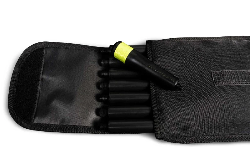 De ReflectaStem MarkaPole Kit wordt compleet geleverd met 6x 1m stokken, 2x 0.5m stokken, 2kg gewicht, 1x ReflectaStem en een slijtvaste draagtas.