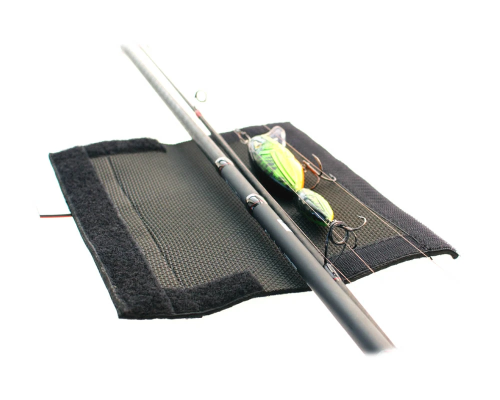 Even vlug verkassen naar die andere stek, dan wel met de fiets, auto of boot. Voor het ‘gemak’ dat goed vangende stuk kunstaas maar even laten hangen. Voordat je het weet slingeren de dreggen je om de oren of schieten de dregpunten incl. weerhaak zo je dure auto of boot bekleding in. Dat wordt trekken om die er weer uit te krijgen met vaak schade als gevolg. Dat zal niet het geval zijn als je dat stuk kunstaas ‘inpakt’ met deze neopreen Lure & Rod Band. Deze vouw je over je hengel en kunstaas heen zodat de dreggen afgeschermd zitten en geen schade kunnen berokkenen. Verkrijgbaar in 2 formaten om zo ieder stuk kunstaas te kunnen afschermen; 25cm x 10cm en 22cm x 35cm.